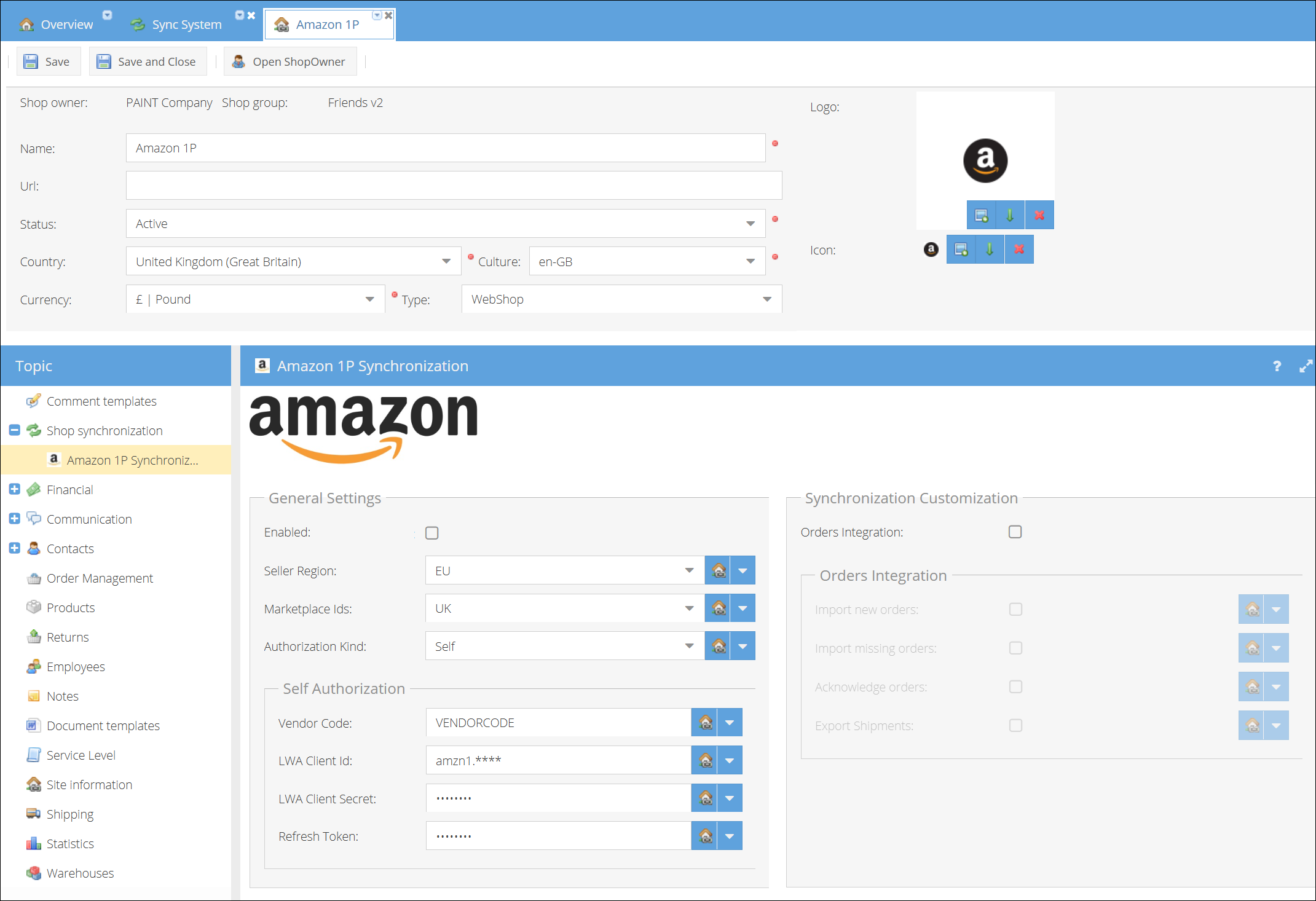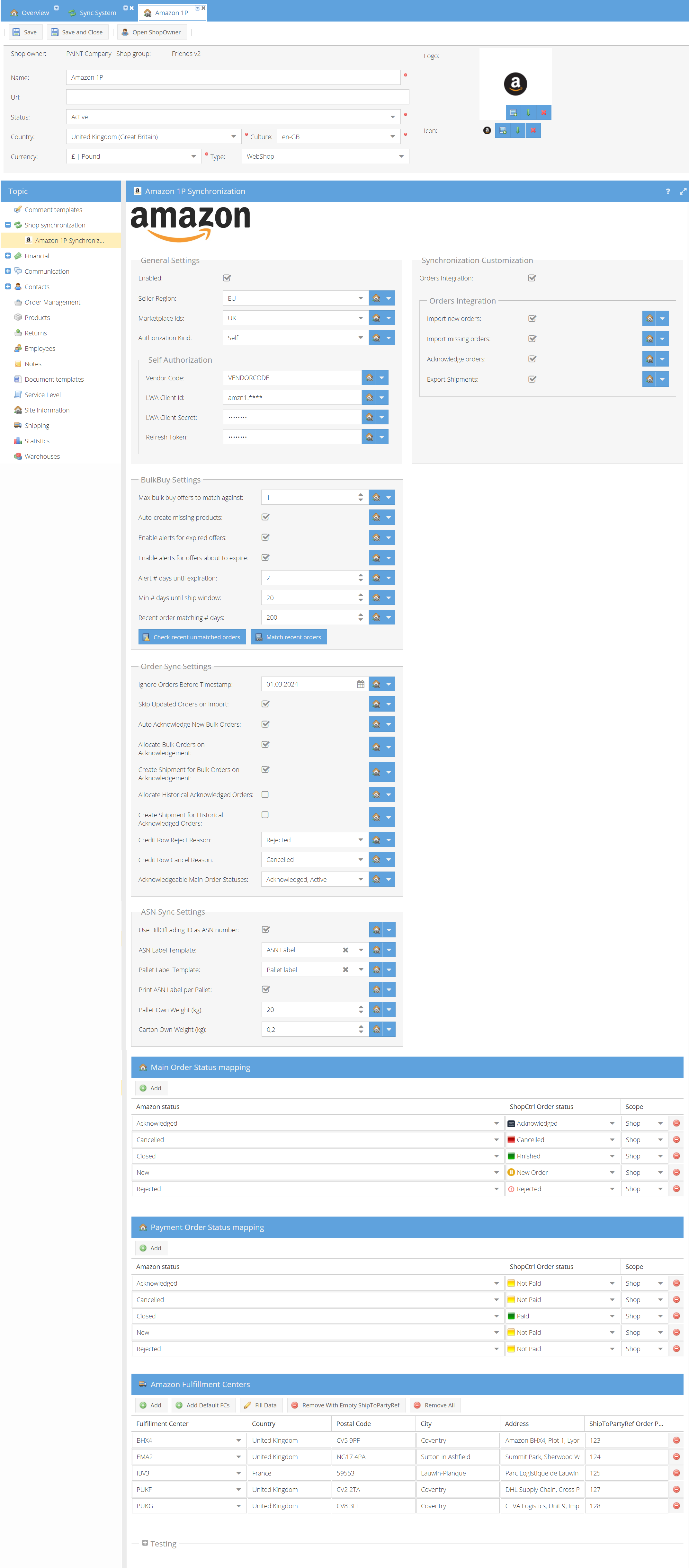 Once you have enabled integration in your Amazon account, you can set up synchronization in ShopCtrl.