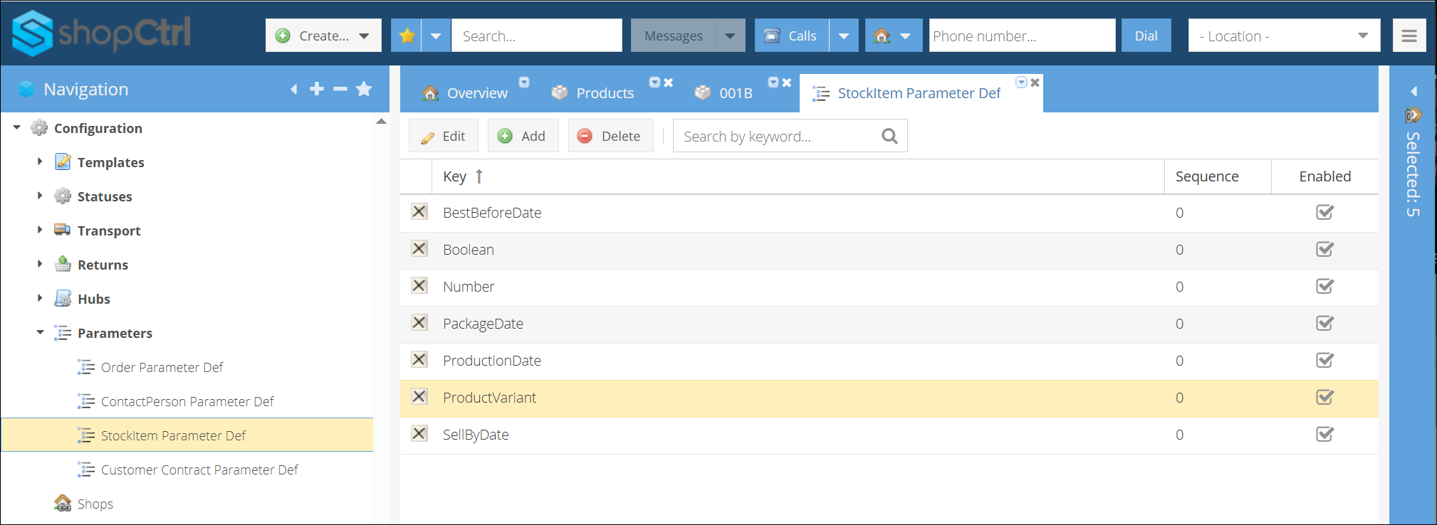 - Navigate to Configuration > Parameters > StockItem Parameter Def.
