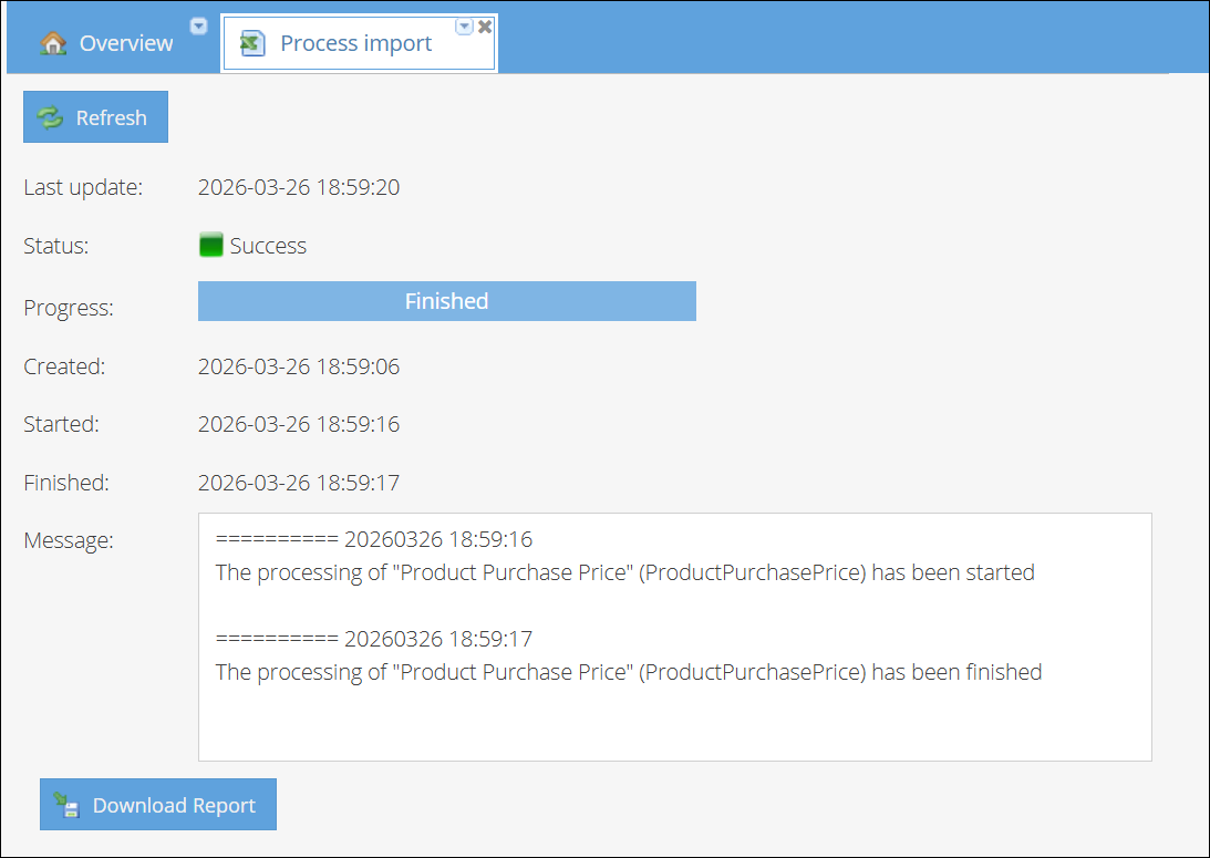Download Report: You can download the Results Excel file from here to see if any rows failed or to view a summary of the processed data.